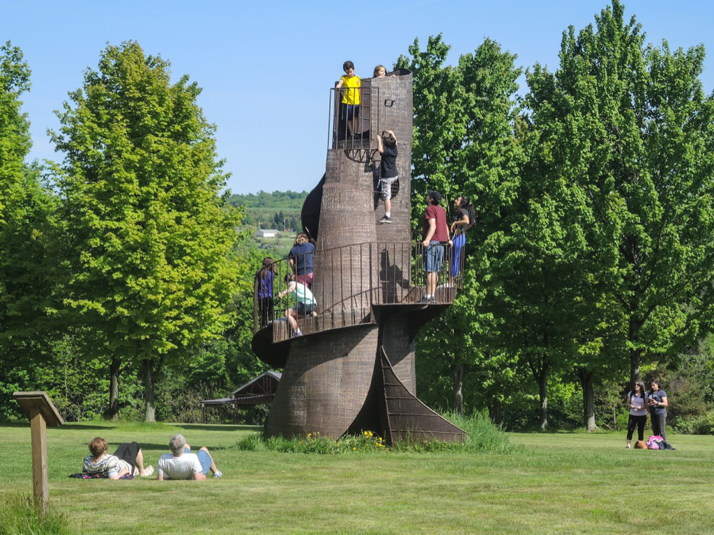 Home Griffis Sculpture Park Just like an opening of a flower, the fields of Griffis Sculpture Park appear to come alive at the sight of Spring. At Griffis Sculpture Park, where nature combines with art, visitors hike along the trail in the woods to then come upon enormous sculptures in the fields. Adults like the park because it has beauty like no other, while children like the park because you can climb on some of the sculptures! Fun to visit in any season, visitors enjoy seeing a giant giraffe, to a submarine or the Amazonian ladies near the lake. Fall invites visitors to see the sculptures bask in the golden sun, the steel seemingly brightened by the color surrounding them. Venture through the woods to find hidden sculptures or view the countryside from the top of the "Castle". Open May 1st through October 31st, the park welcomes visitors from dawn to dusk and features over 250 large scale sculptures. Split in two sections, Rohr Hill Road Site and Mill Valley Road Site, both are equally interactive, and can be explored separately or with the connecting trails through the woods. The park has been opened since the early 60's and holds the distinction of being one of America's largest and oldest sculpture parks. Read more information about Griffis Sculpture Park Categorized in Autumn Spring Summer Adventure Art Family Entertainment Hiking Walking Tours Galleries & Art Spaces Historic Sites Educational Nature Email this page Photos tagged as #EnchantedMountains or #EMFun. @emountains