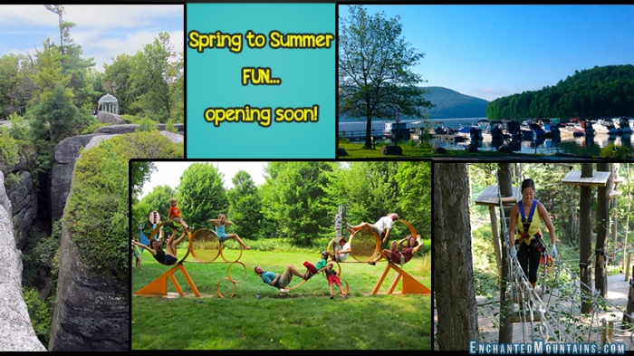 Home » Blog » 2017 » 04 April Shows bring May Openings! by Jacquie on Apr192017 Warm Nights, Time Outdoors and Fun in the Sun are all on the way! Make a plan to sprout Spring Plans in the Enchanted Mountains of Western New York! Warm weather is here and we are now officially out of the chance of a snowstorm. The leaves have started to grow, the light stays with us past dinnertime and it's time to watch the renewal of nature! You don't want to miss a minute of enjoying nature awakening around you, so make plans to visit one of our incredible outdoor attractions that just happen to open up in May as well! Rock City Park, Griffis Sculpture Park, Sky High Adventure Park and Onoville Marina invite you to come find the signs of Spring with them this year! Rock City Park will offer visitors a spectacular view of the Enchanted Mountains from "Signal Rock", where they can see all the new leaves forming on the trees. You might be amazed to find some leftover ice and snow hidden deep in the crevices of the rocks! Discover 80 feet tall rocks that have been left over from the ice age. Hike the trail that leads under, around and sometimes through these magnificent rocks then check out the souvenir and rock shop or the Fluorescent Light Rock Room. Plan a trip there for their annual Mother's Day Weekend Arts and Crafts Show. Artisans will display watercolors, oils, sculptures, photography, glass, metals and much more! Just like an opening of a flower, the fields of Griffis Sculpture Park appear to come alive at the sight of Spring. At Griffis Sculpture Park, where nature combines with art, visitors hike along the trail in the woods to then come upon enormous sculptures in the fields. Adults like the park because it has beauty like no other, while children like the park because you can climb on some of the sculptures! Fun to visit in any season, visitors enjoy feeling the warmth of the sun while resting beside a giant giraffe or by the ladies near the lake. See the budding trees up close and personal at Sky High Adventure Park. Plan your attack through a series of platforms and "bridges" where the challenge is to figure out how to get to the next platform. The platforms are built high amongst the trees and connected by logs, hanging chunks of wood or other obstacles. If tend to prefer to have your feet on the ground, never fear! There are 12 courses with varying levels of difficulty; the more difficult the course marking, the higher up it is in the trees. Most courses include a zipline ride, and some have more than one! Suitable for visitors age seven and up. And don't forget the most fun on four tracks, the Sky Flyer Mountain Coaster! Warmer weather also means warmer water! Float your boat and soak up the sun along 91 miles of natural shoreline in the Reservoir, launching at Onoville Marina. "Put in" at Onoville Marina, the largest inland marina in New York State. Campsites, dock space and fuel dock are available as well as great dining nearby at the Horseshoe Inn and the Nic-L-Inn. View the beautiful scenery of rolling hills, clear water, and wooded areas as you drift or speed along! Boat rentals are available at the Bayview Mini-Mart and Ice Cream Parlor. Mark July 22nd on your calendar for Onofest! A day-long event filled with good music, food, crafts and fireworks alongside the water! Or slow down to really enjoy the unfolding beauty of nature and find a simpler way of life along the Amish Trail. The ice and snow have all melted along the back roads of the Western side of Cattaraugus County which is home to a community of Old Order Amish. Adventure through this area to find unique handiworks and learn about the culture of these people, who live separate from the modern world. Stop by one of the greenhouses for beautiful flowers, plants, and small vegetable plants to improve your own garden. Live to Ride? Then you have been waiting all winter to get your motorcycle out for some fun! Keep a heads up for two motorcycle events in our area. First, join the rest of the gang at Gowanda Harley-Davidson on Memorial Day for their Ride to Remember. Honor and respect those who served and the reason behind the day. Then let loose at the Hollywood Happening, one of the area's largest motorcycle events. Three days of live bands, contests, vendors and rides to benefit the ongoing restoration efforts of the Hollywood Theater the first weekend of June! So plant some plans to see Spring unfold by making a trip to the Enchanted Mountains of Western New York. For free information on any of these activities or events, or to request free guides, call 1-800-331-0543 or request online. About Jacquie "Live in the Sunshine. Swim the Sea. Drink the Wild Air." - Emerson Filed in Spring Summer Bicycling Boating Family Entertainment Hiking Nature cattaraugus county Griffis Sculpture Park Motorcycle Rides Onovilla Marina Rock City Park Sky High Adventure Park spring Login to post comments Email this page Photos tagged as #EnchantedMountains or #EMFun. @emountains
