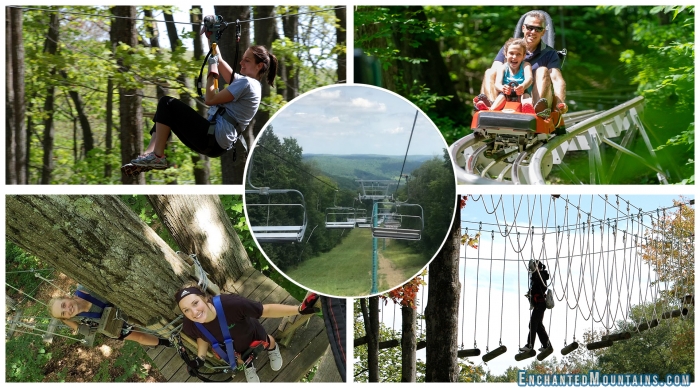 Home » Blog » 2020 » 07 A Full Day of Fun at Holiday Valley by Danna Scharf on Jul292020 Want to take a ride on a chairlift with the warm summer sun on you? Here’s your chance! Holiday Valley offers chairlift rides up to Spruce Lake on Saturdays and Sundays. There’s no better way to relax and take in the beautiful scenery around you. Once you get off at the top you can explore around the lake and if you’re still feeling active walk the trail down. Hopping back on the chairlift to gaze at the rolling hills ahead of you isn’t a bad choice either. Spice your day up even more and join in on the fun at the Sky High Adventure Park. Sky High Aerial Adventure Park has 13 courses, varying levels of difficulty, through 4 acres of woods. Use the platforms, bridges and zip lines to make your way from treetop to treetop. Test your strength and agility. You’ll have an adrenaline rush at some point along the course, if not the whole time! Not ready to end your day just yet? Sky Flyer Mountain Coaster will have you and your kids leaving with a smile. The roller coaster zigs, zags and spirals down the mountain through the trees and YOU get to control the speed! Take your time and enjoy or make it a thrilling adventure, leaving your hair wind-blown! So much enjoyment in one place, with experiences you won’t regret! Please be sure to check all covid-19 guidelines. About Danna Filed in Autumn Spring Summer Adventure Family Entertainment Hiking adventure Chairlift Rides Holiday Valley Sky High Adventure Park spruce lake Ellicottville Login to post comments Email this page Photos tagged as #EnchantedMountains or #EMFun. @emountains