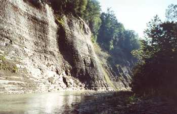 At one point there were glaciers covering most of New York State. These glaciers melted and refroze several times. As the glaciers would melt away all that water had to go somewhere. What path would this water have taken? In order to answer this question we traveled to a local site that we suspected was formed by this leftover water. When we arrived at the site we were awed by the magnificent cliffs at each side of the river bed. We would recommend that everyone looking for amazement and adventure to travel to Zoar Valley.