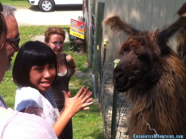 Home » Gallery » Photo Contest 2015 Girl and llama at Mager Mountain Alpacas Girl having fun with a llama at Mager Mountain Alpacas. Photo by Joe Pillittere. in Alpacas Farm Tours Farm, Foods & Wine Adventure Seekers Little Valley Nature Lovers Login to post comments Email this page Photos tagged as #EnchantedMountains or #EMFun. @emountains