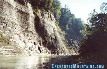 Home » Places Zoar Valley - Valentine Flats Valentine Flats parking area offers a trail to an overlook or a steep trail down into the gorge. From the Zoar Valley Multiple Use Area page on NYS DEC: The trail north to Overlook Point is a 0.75-mile loop that includes a hogs back vantage point that juts out into the gorge. The Valentine Flats trail to the south from the parking area is a steep trail into the gorge area, ending at the confluence of the South Branch and Main Branch of Cattaraugus Creek. This trail was an old access road leading to a former farm on the flats along Cattaraugus Creek near the confluence. The trail winds down into the gorge through the old growth hemlock/hardwood forest for about 0.8-miles. Along the flat flood plain, the trail winds through a black walnut plantation with thick brush before reaching the creek. It will take considerable time to hike in and out of the gorge. Plan for enough daylight hours to make the hike safely. Fishing Fish for rainbow trout(steelhead) or other trout on Valentine Flats section of the Cattaraugus Creek. Hiking Hike to a great place to overlook the gorge or to sit by the flowing water of the creek. Canoeing & Kayaking You can hike to the water but you are looking at a hike of just over 0.75 miles with your equipment. Geology At one point there were glaciers covering most of New York State. These glaciers melted and refroze several times. As the glaciers would melt away all that water had to go somewhere. What path would this water have taken? In order to answer this question we traveled to a local site that we suspected was formed by this leftover water. When we arrived at the site we were awed by the magnificent cliffs at each side of the river bed. We would recommend that everyone looking for amazement and adventure to travel to Zoar Valley. Maps If you were to go to the Valentine Flatts outlook in Zoar Valley you might find that the walls of the valley remind you of the Grand Canyon. In one way or another Zoar Valley is a small scale model of the Grand Canyon. To find out for your self put these coordinates 42.4465°N 78.9002°W into your GPS or into Google Maps and follow the directions given. The NYS Department of Environmental Conservation has a great page about the Zoar Valley Multiple Use Area. Information compiled by Tyler Wilder and Jacob Domes 5/31/2012 for the Cattaraugus County Geology Trail Valentine Flats Parking Area Valentine Flats Road Gowanda, NY United States 42° 26' 37.2876" N, 78° 54' 14.292" W General Information Wheelchair Accessible: Unknown Parking: Yes RV Parking: Unknown Bus Parking: Unknown Pets Allowed: Unknown Accepts Credit Cards: Unknown Internet Access: Unknown Conference / Meeting / Banquet: Unknown Playground: Unknown Indoor Pool: Unknown Outdoor Pool: Unknown Swimming: Creek Boat Launch or Dock: Yes Fishing Access: Direct Equestrian Trail Access: Unknown Bicycle Trail Access: Unknown Hiking Trail Access: Yes Mountain Biking Trail Access: Unknown Snowmobile Trail Access: Unknown Please note Please note that this information may change and may be incorrect Zoar Valley - Valentine Flats is categorized in Autumn Spring Summer Fishing Hiking Kayaking & Canoeing Rafting geology Adventure Seekers Nature Lovers Persia Printer-friendly version Email this page Photos tagged as #EnchantedMountains or #EMFun. @emountains