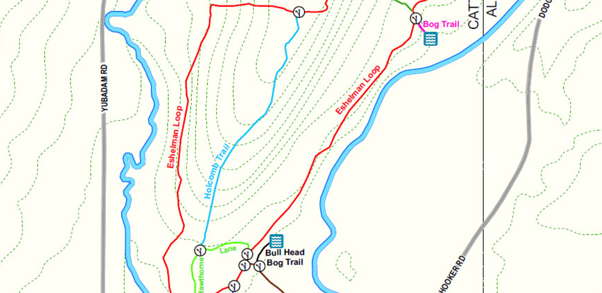 Home » Trails Eshelman Tract at Pfeiffer Nature Center Downloads for this Trail pfeiffer-nature-center-eshelman-tract.pdf Pfeiffer Nature Center's Eshelman Tract is composed of the main Eshelman Loop and 5 connecting trails. Eshelman Loop Hike along the creek & up the hill, coming out on top for a great view of the valley, then back into the woods downhill. Moderate to difficult climb—Round trip 2.4 miles Holcomb Trail This wooded trail, climbing halfway up the hillside, is a great place to wee woodland creatures of all types. Moderate to difficult climb—One way, 0.32 mi Hill Top Moving along the crest of the hill through the woods, the forest wildlife abounds. One way, 0.24 mi Bullhead Run Meander through the meadow and by a pond that teems with life just below the surface. Easy walk—Round trip, 0.26 mi Hawthorn Lane The successional field is a great place to see plants and animals that like transitional scrub areas. Easy walk—One way, 0.14 mi Sugar Run See where maple syrup was made generations ago as you hike through the woods to the top of the hill. Modest climb—One way, 0.22 mi Downloads for this Trail pfeiffer-nature-center-eshelman-tract.pdf Activities Downloads The Eshelman Tract at Pfeiffer Nature Center is great for the following activities: Hiking Snowshoeing Created on Fri, 03/13/2015 - 2:55pm Categorized in Autumn Spring Summer Winter Adventure Seekers Nature Lovers Login to post comments Email this page Photos tagged as #EnchantedMountains or #EMFun. @emountains