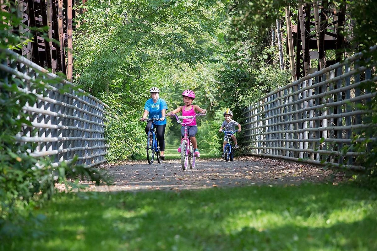 Home » Trails Pat McGee Trail You can hike, bike, ride a snowmobile or ride horse on the Pat McGee Trail. This mile multi-purpose 12.2 trail will grow to be a county-wide system but at this time it connects 7 municipalities together (from the Village of Cattaraugus to the City of Salamanca). On the trail, you can enjoy quiet contact with nature on the Pat McGee trail. It offers woodlands, wetlands, and green-space that is home to a wide variety of animals, birds, and vegetation. The trail has six bridges that cross several streams. The longest bridge is over 100 feet in length. Signage along the way explains geology of the area, historic areas, conservation projects, and wildlife. Trailheads There are five trailheads. The major trailhead, with a small community park consisting of a picnic shelter and two gazebos, is located in the Village of Little Valley. This trailhead is approximately halfway between Allegany State Park and Zoar Valley. The only section of the trail that is paved is from this trailhead south to the Little Valley Community Recreational Park. The rest of the trail is composed of an aggregate over the original rail-bed. Flora & Fauna The bio-diversity of the trail has been identified, having: 9 unique eco-systems 41 mammal species 150 species of birds 174 species of plants, and trees. There are 10 different geological phenomena along the trail including a continental divide. Because the trail runs down the spine of the county, numerous horse and snowmobile trails intersect and loop off the trail (the trail is corridor #1A on the NYS Snowmobile network). The North Country National Scenic Trail, Bi-Centennial Bike Trail and the Finger Lakes Trail all cross the Pat McGee Trail. Interpretive educational signs were placed along the trail. Overview Video Watch the Overview video about the Pat McGee Trail Autumn Video Downloads Download the Pat McGee Trail map Activities Downloads The Pat McGee Trail is great for the following activities: Bicycling Hiking Horseback Riding Snowmobiling Updated on Wed, 09/01/2021 - 9:08am. Login to post comments Email this page Photos tagged as #EnchantedMountains or #EMFun. @emountains