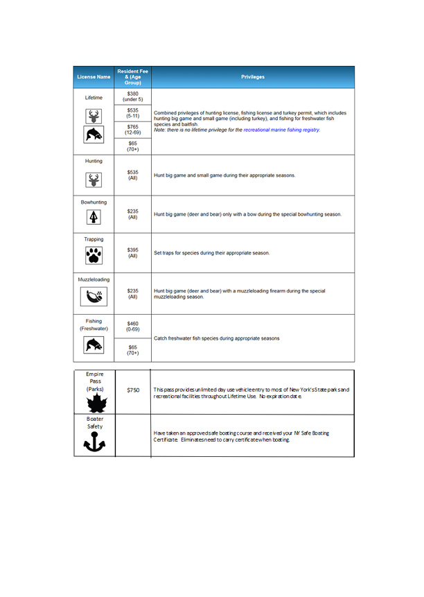Avid hunter and angler and feeling a little jealous?  No need, there's an option for you too from the DEC!  You can also purchase a Lifetime Sporting License and have that put on your driving license as well!  See below for the appropriate icons and pricing.