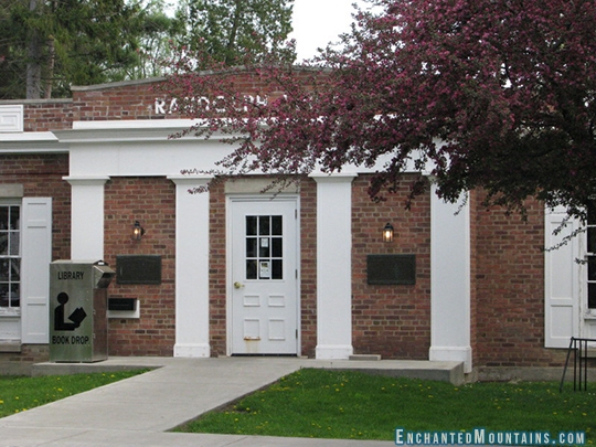 Home » Places Randolph Free Library Books and audiobooks, periodicals and reference material, DVD's and videos, free high speed internet access. Hours Monday: 1-9 Tuesday: 1-9 Wednesday: 7-9 Thursday: 1-9 Friday: 10-5 Saturday: 10-5 Sunday: Closed Closed on all federal holidays Randolph Free Library 26 Jamestown Street Randolph, NY 14772 United States Phone: 716-358-3712 42° 9' 46.6416" N, 78° 58' 37.272" W Website: www.randolphfreelibrary ... General Information Wheelchair Accessible: Yes Parking: Yes RV Parking: Yes Bus Parking: Yes Pets Allowed: No Accepts Credit Cards: Unknown Internet Access: Yes Conference / Meeting / Banquet: Unknown Playground: Unknown Indoor Pool: Unknown Outdoor Pool: Unknown Swimming: Boat Launch or Dock: Fishing Access: Equestrian Trail Access: Unknown Bicycle Trail Access: Unknown Hiking Trail Access: Unknown Mountain Biking Trail Access: Unknown Snowmobile Trail Access: Unknown Please note Please note that this information may change and may be incorrect Randolph Free Library is categorized in Autumn Spring Summer Winter Library Family Entertainment Rainy Day Culture Enthusiasts Randolph Email this page Photos tagged as #EnchantedMountains or #EMFun. @emountains