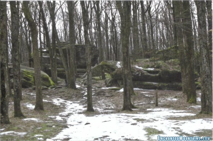 A long time ago (about 360 million years ago) New York State, along with Allegany State Park was covered by a large, shallow sea. The nearby Catskill Mountains were formed to the east during this time. Sediment from these mountains eroded westward towards western New York and deposited within this area. Thunder Rocks is made up of this sediment. Over some time, frost wedging and gravity erosion shaped the boulders into their present arrangement. Gravity was able to pull the large rocks down some slopes and hills. This resulted in the rocks being scattered away from each other.